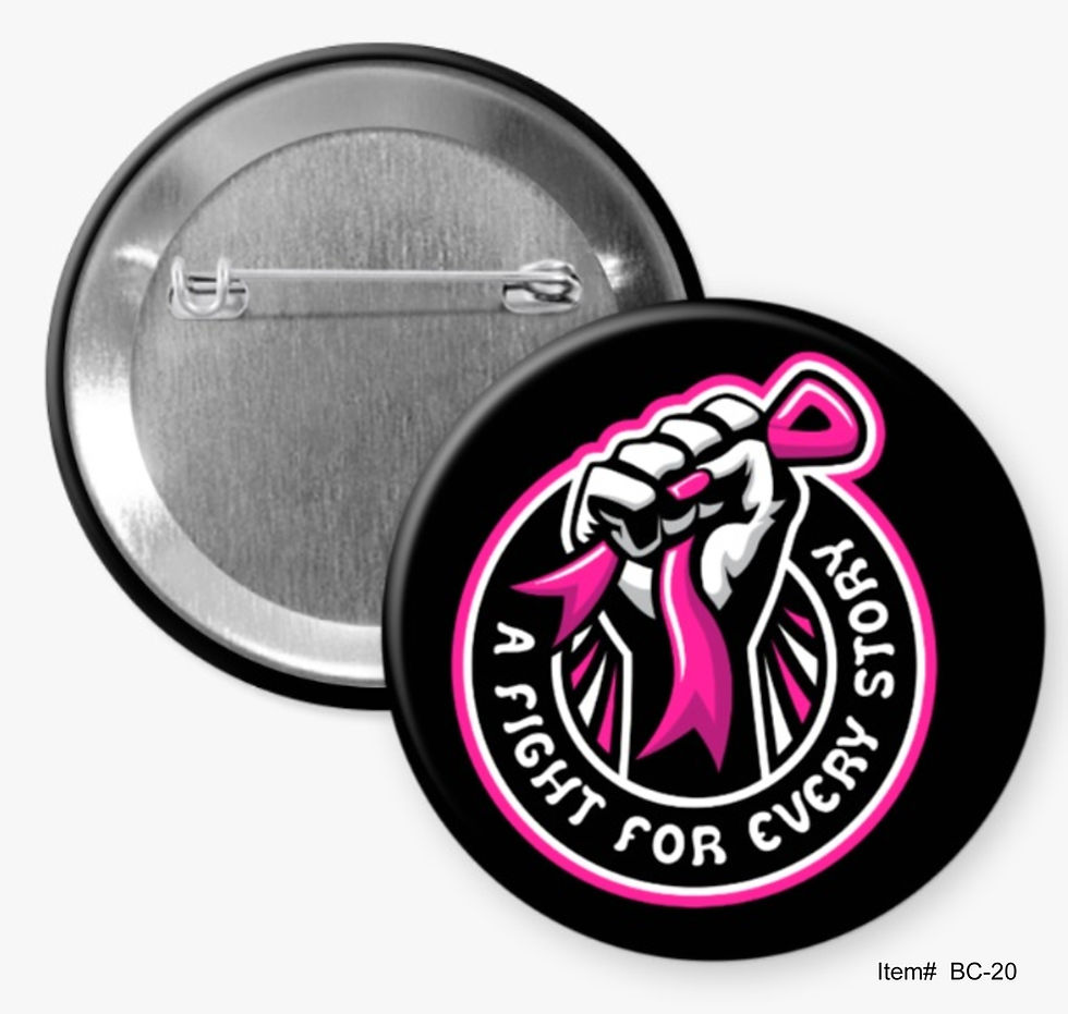 A Fight For Every Story, Fist Holding A Pink Ribbon, Breast Cancer Buttons